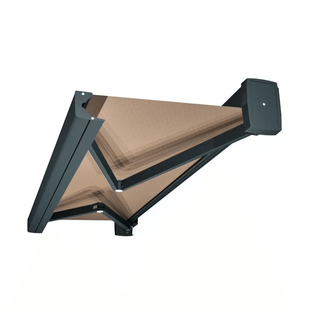 O suporte de parede extrudido permite a fixação rápida e a fixação simplificada do toldo pré-montado. Instalação por baixo por rotação do cofre.