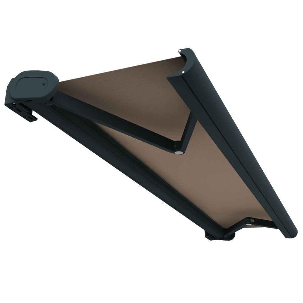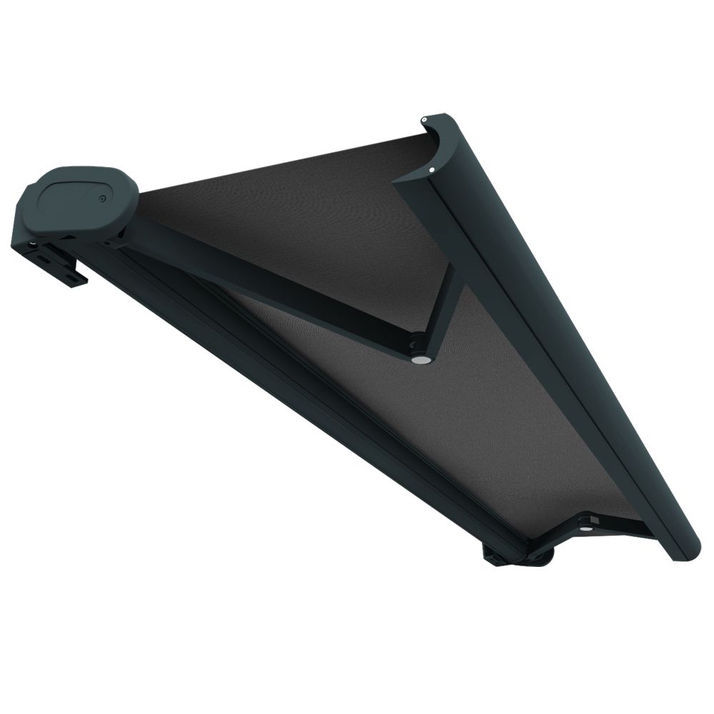 Cofre fechado. A tela está completamente protegida, assim como os braços. Todos os parafusos estão escondidos pelas tampas laterais para uma estética perfeita. Pode escolher a inclinação do toldo do terraço de 0° a 60° graças aos parafusos de ajuste. Tem assim uma proteção ideal contra o sol. A sombra projetada no seu terraço ou varanda permite-lhe ganhar conforto ao longo do dia.